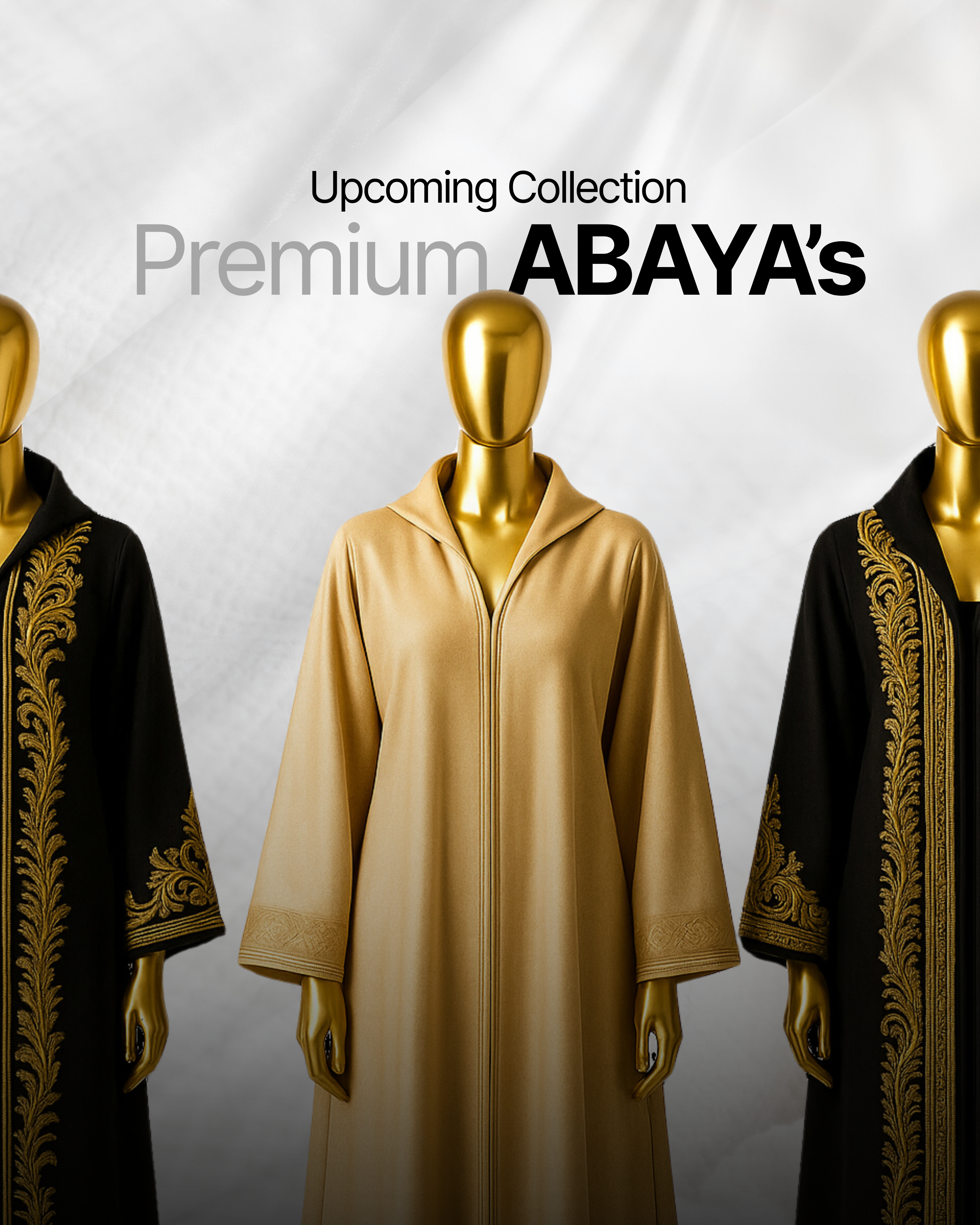 A curated blend of modesty and luxury. Our exclusive Abaya line is on its way. Sign up to be the first to know